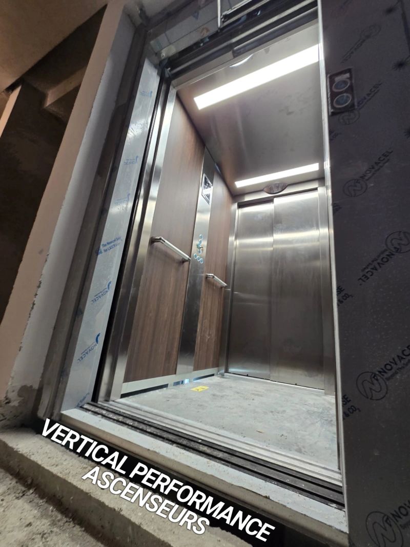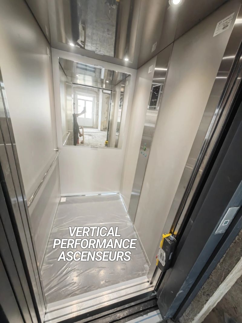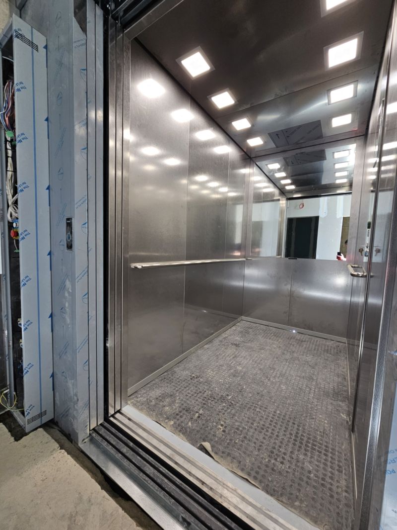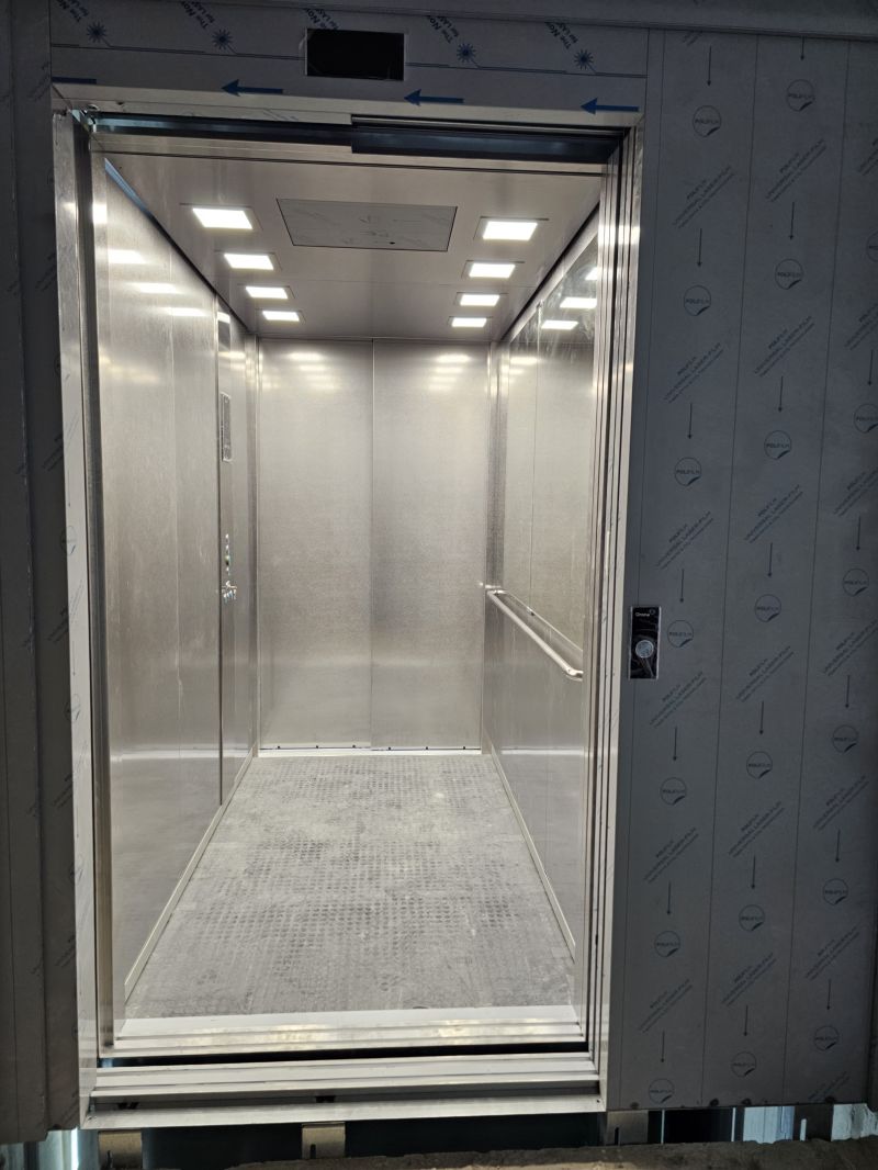 Installation d'un Orona X10 de 630kg et 3 niveaux, équipé d'une cabine Inox.