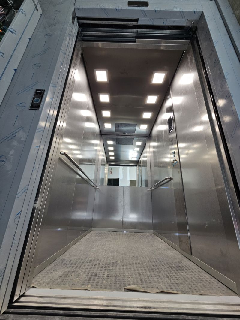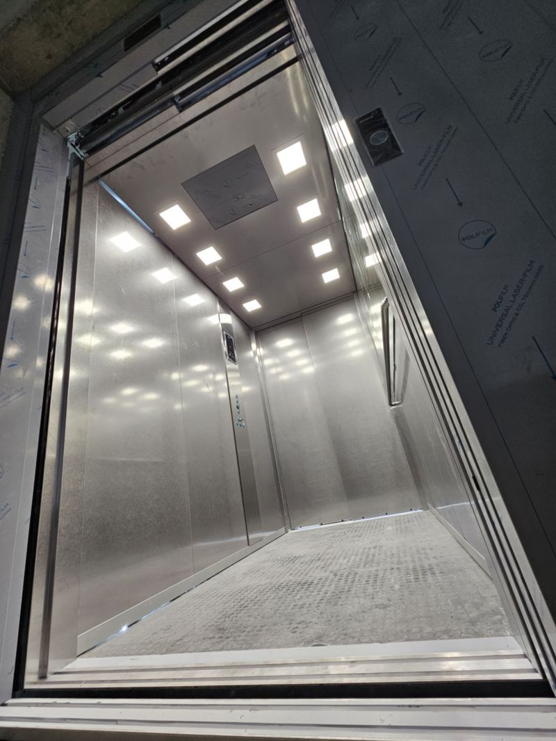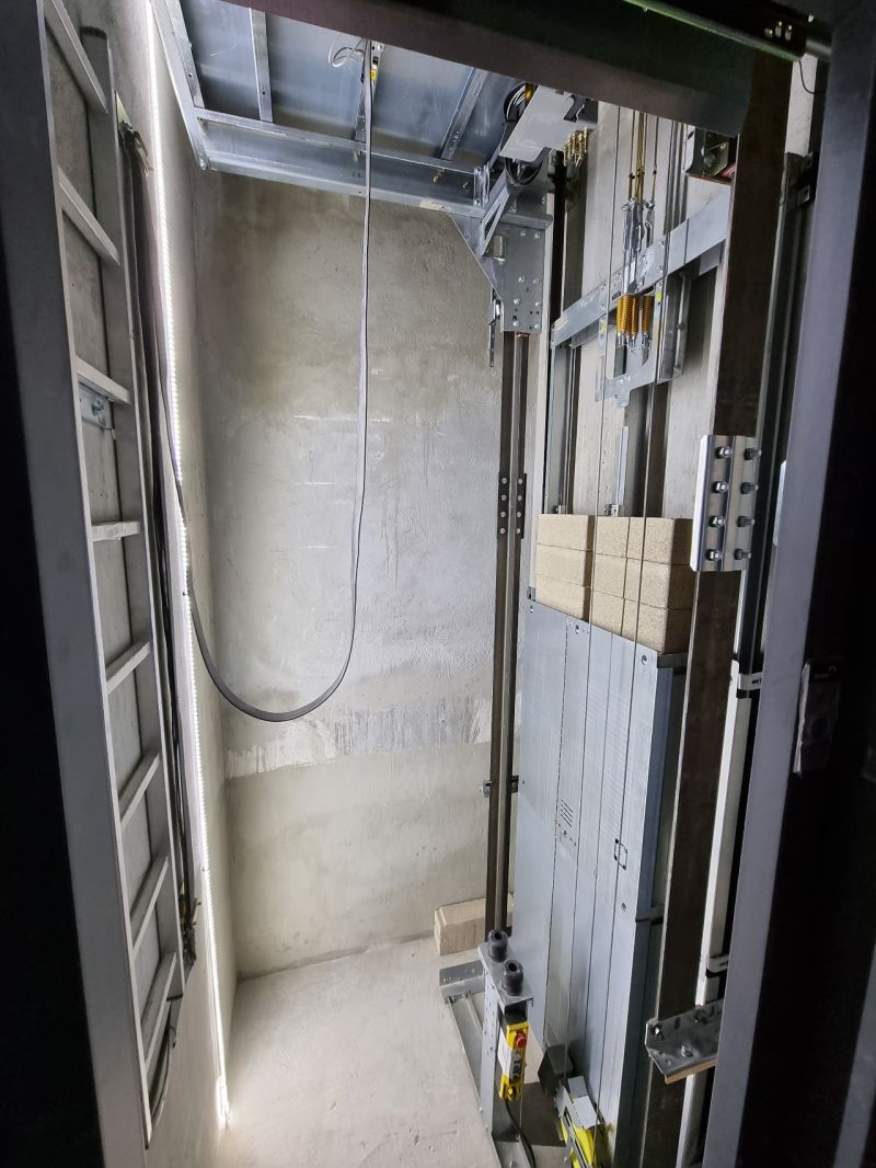 Installation d'un ascenseur X10 630kg avec 4 niveaux et double accès.