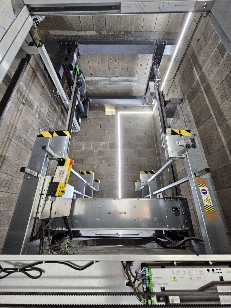 Installation d'un ascenseur ORONA 630kg simple accès 2 niveaux.