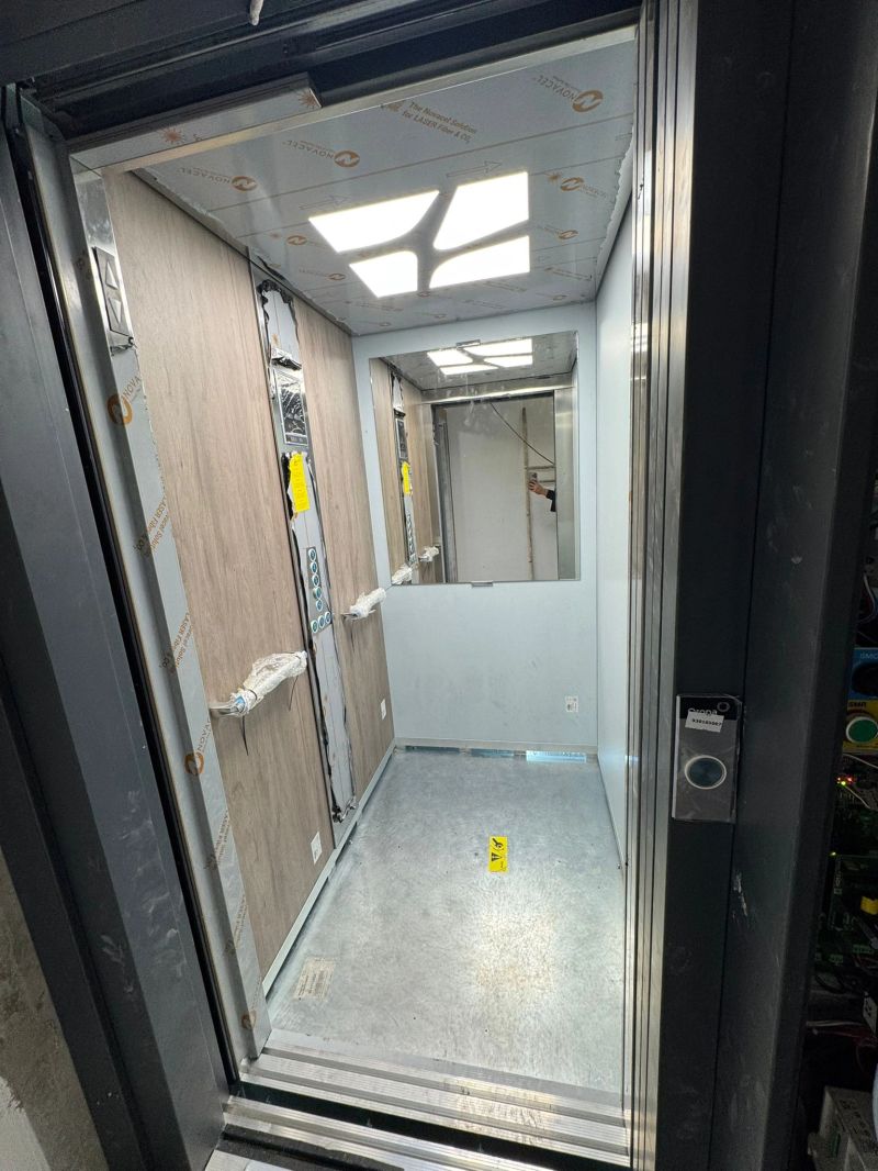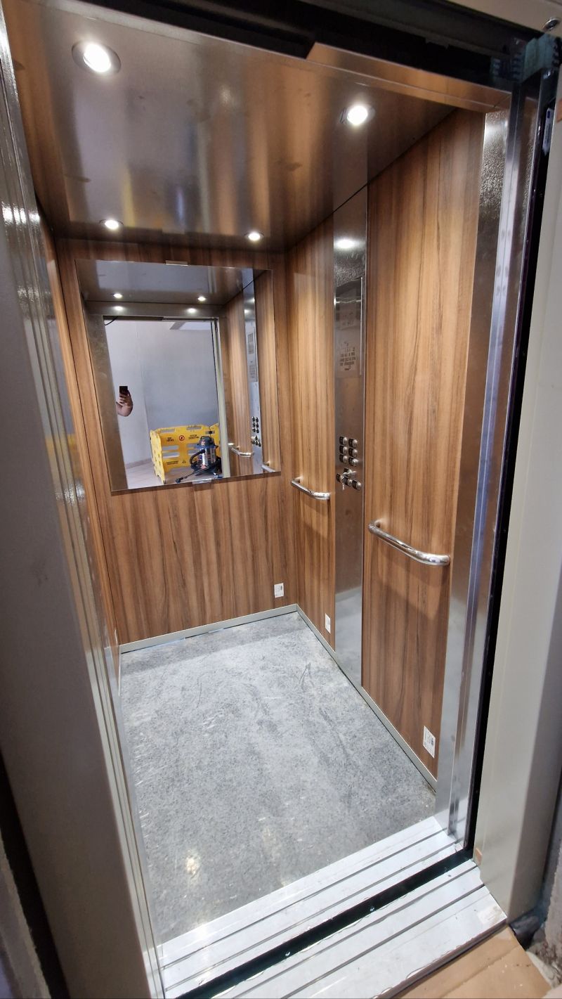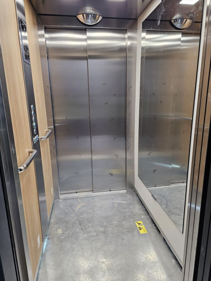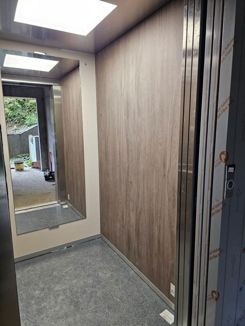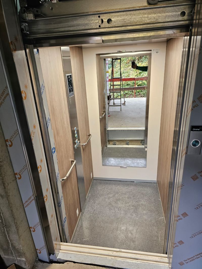 Installation d'une ascenseur ORONA 630kg double accès avec une magnifique cabine jeune.