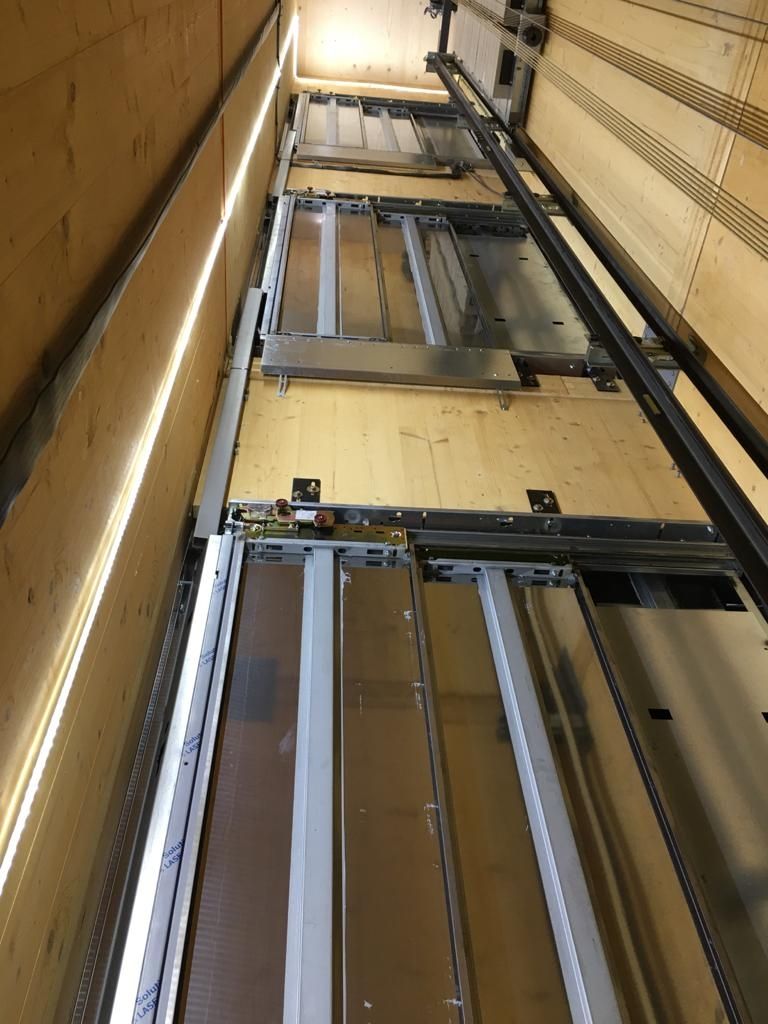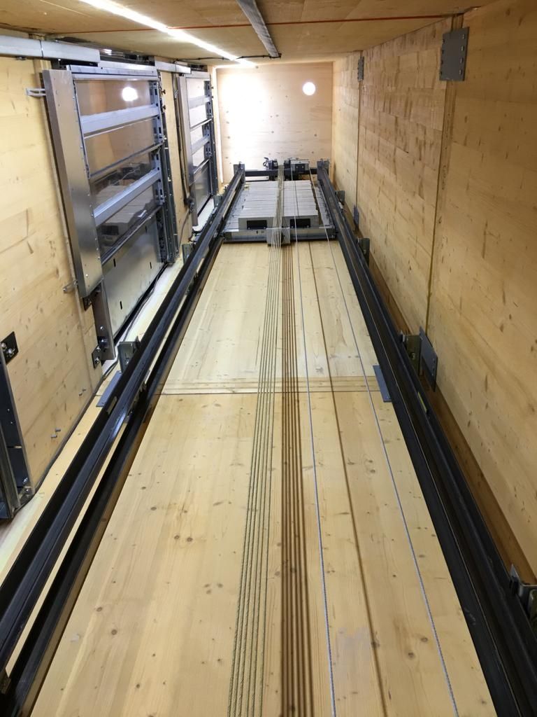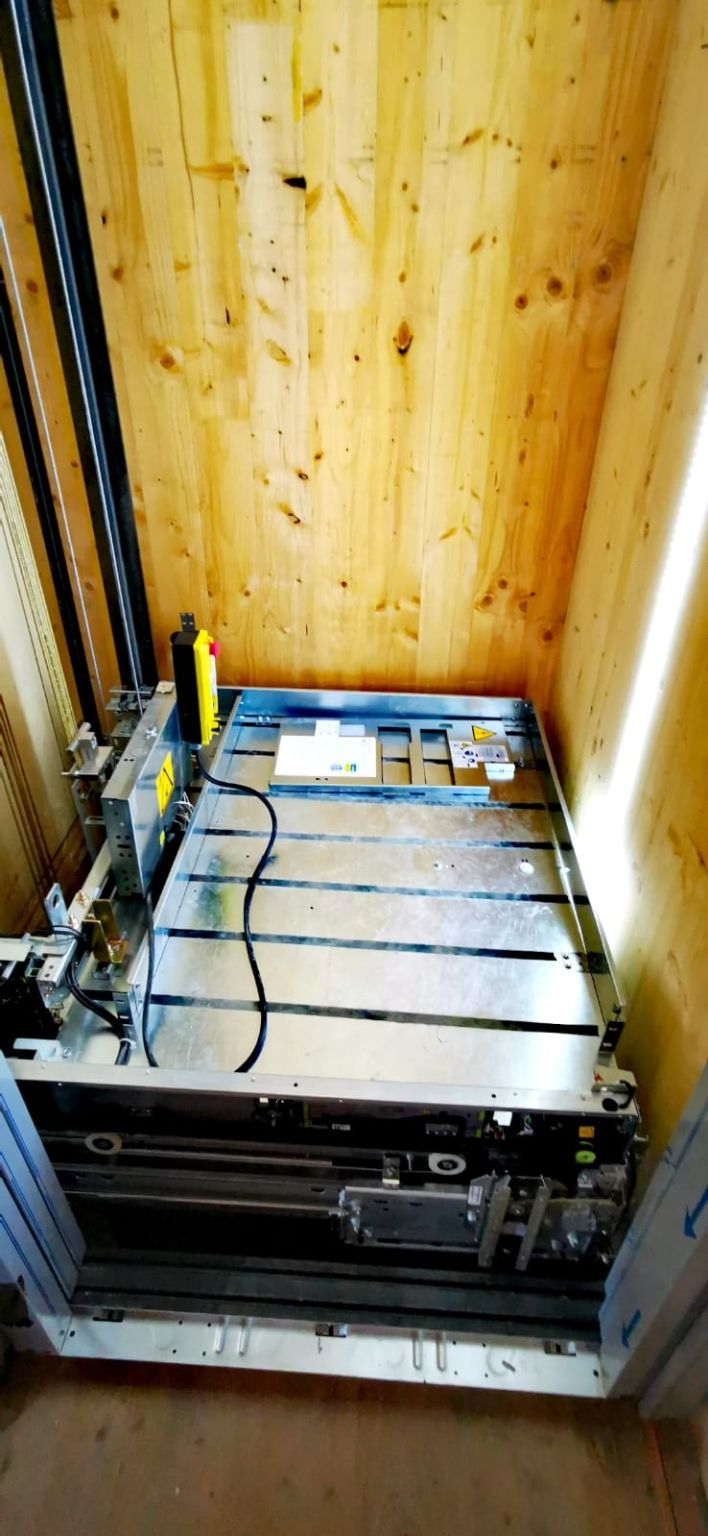 Montage d'ascenseur Orona 630kg cage en bois.