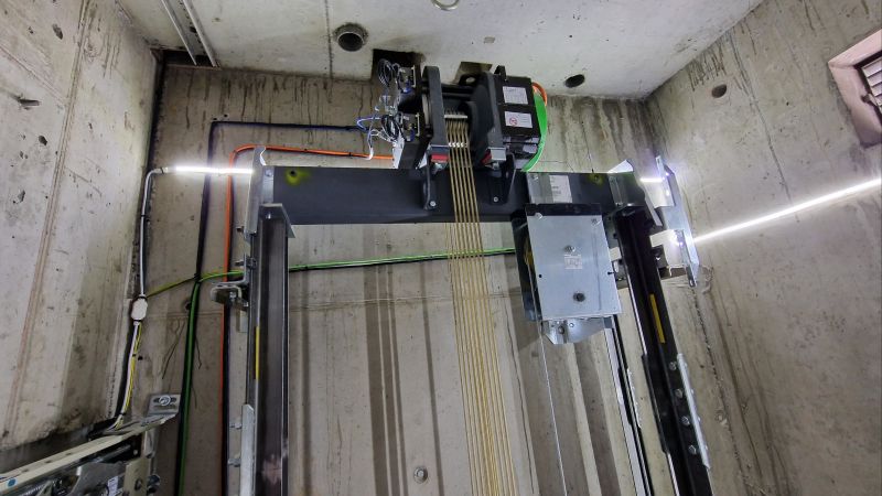 Pose d'un ascenseur Orona 630kg HSD.