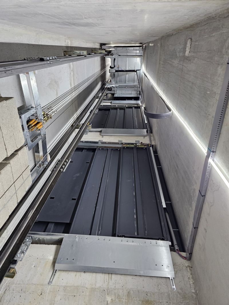Installation d'un ascenseur ORONA 630kg double accès 4 niveaux.