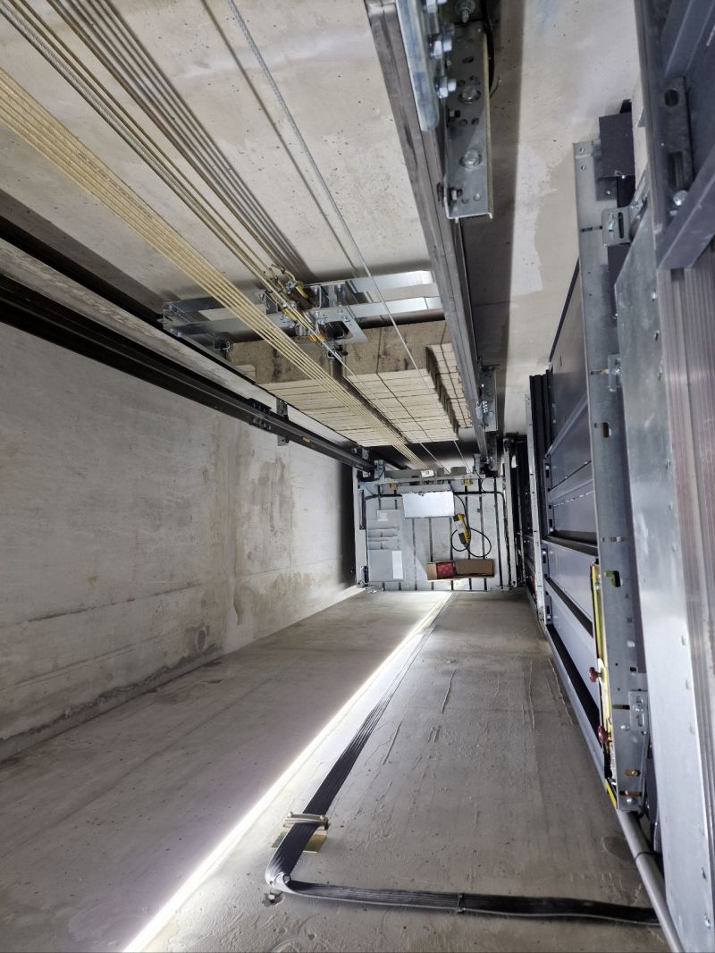 Installation d'un ascenseur ORONA 630kg simple accès 6 niveaux avec HSD.